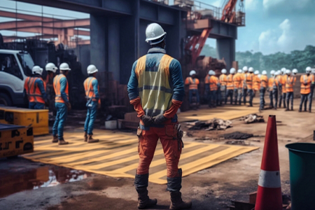 朝礼参加、安全ミーティング、工事の打合せ後、資機材を設置します。